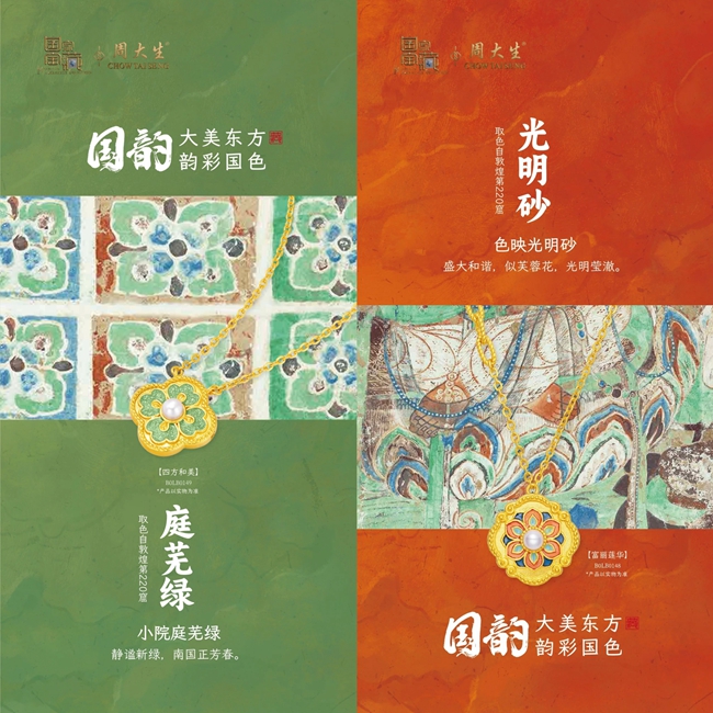 据悉,周大生珠宝与《国家宝藏》IP在2022年便已达成合作,共同打造国家宝藏X周大生联名IP珠宝,从珠宝的角度,展示文物的美学价值,呈现国宝的生命活力。国家宝藏X周大生联名IP下设八大主题,分别为国韵——东方韵美装扮系列、国禧——新中式婚恋囍饰系列、国瑞——经典文化祝福系列、国钰——时尚中国玉系列、国颂——高端艺术典藏系列、国风——新中式时尚潮搭系列、国佑——成长佑护系列、国雅——东方雅韵高级珠宝系列。