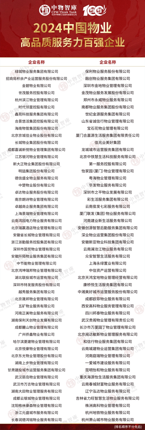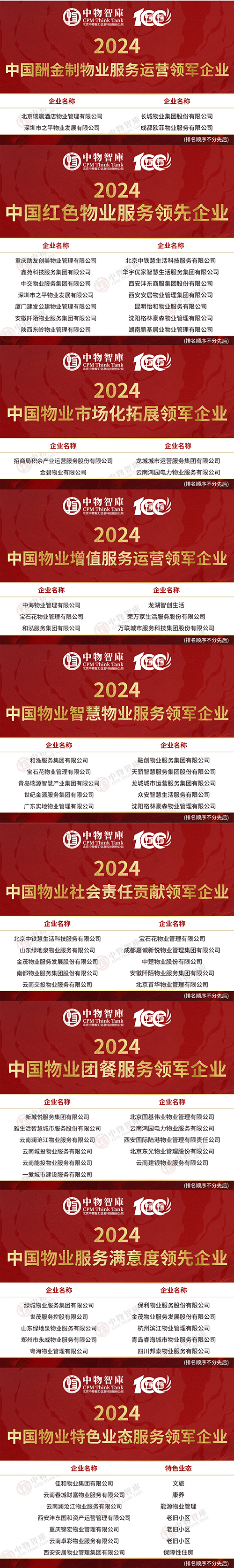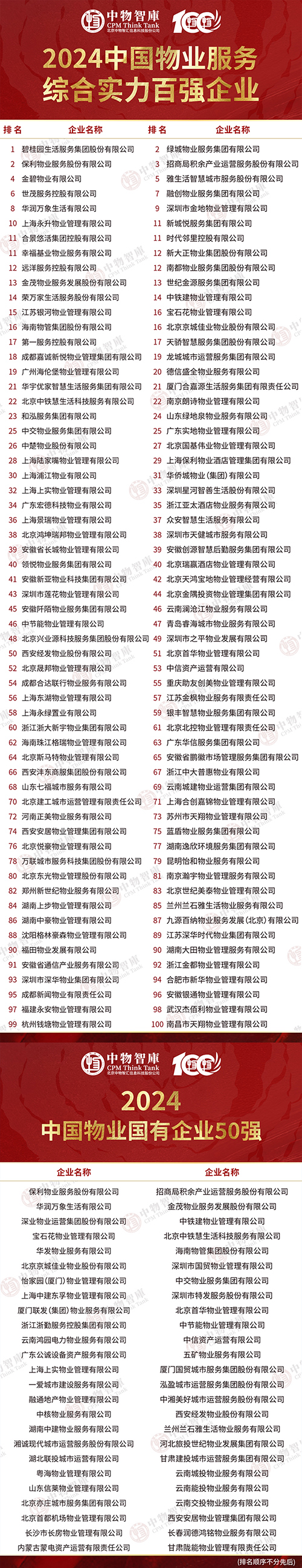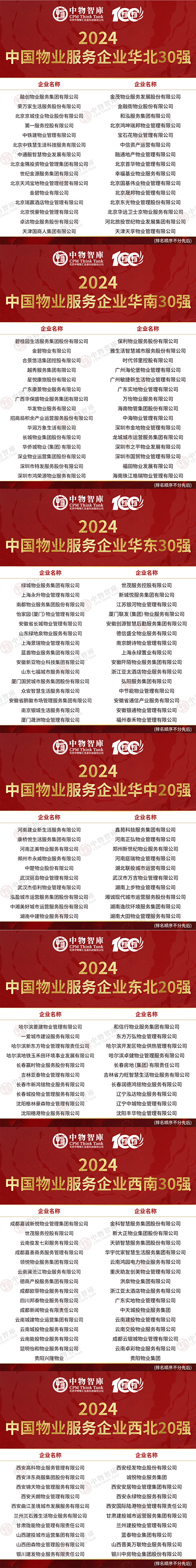 详细内容见《2024中国物业百强企业研究报告》,关注【中物研究院】,回复“100”领完整报告