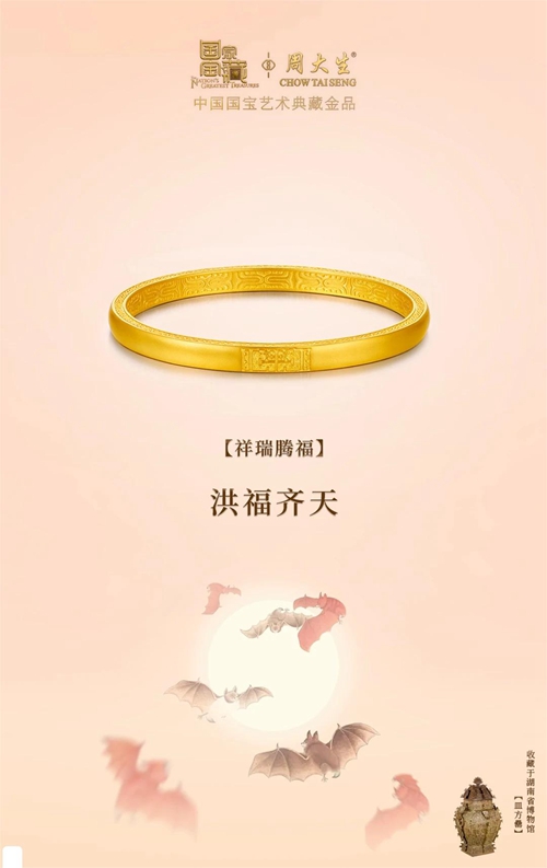 皿方罍被称为商周方罍之王,是商代晚期的酒器。其装饰造型生动,纹路栩栩如生,雄浑庄重,富丽堂皇,是晚商青铜器鼎盛时期的代表之作。在本期《国家宝藏》精编版节目中,皿方罍由黄渤、王嘉两位明星嘉宾共同守护,他们的演绎让国宝的前世今生徐徐展开。而周大生同样溯源皿方罍的文化内涵和历史传承,国家宝藏×周大生联名IP的“祥瑞腾福”从中汲取设计灵感,镌刻皿方罍中的夔龙纹、凤鸟纹等经典元素,寓意祥瑞罩身,洪福齐天。