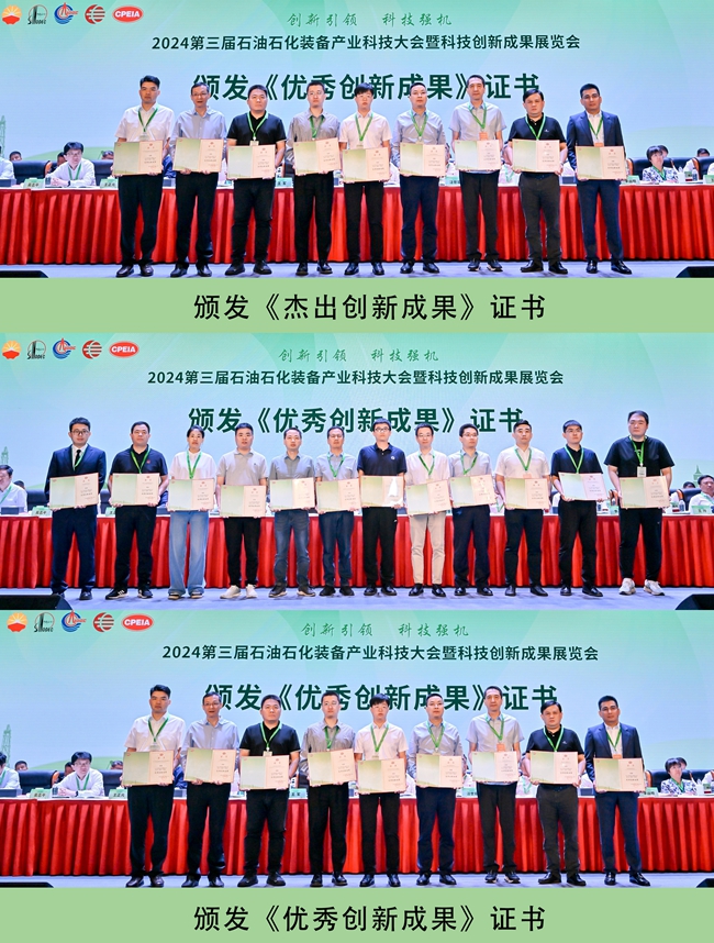 会议同期举行了 “2024年石油石化装备行业新产品、新技术、新材料科技创新成果” 发布仪式,中石协副会长兼秘书长张冠军宣读了《关于发布“2024年石油石化装备行业新产品、新技术、新材料科技创新成果”的决定》,会议为获评“杰出创新成果”和“优秀创新成果”的代表颁发了证书。