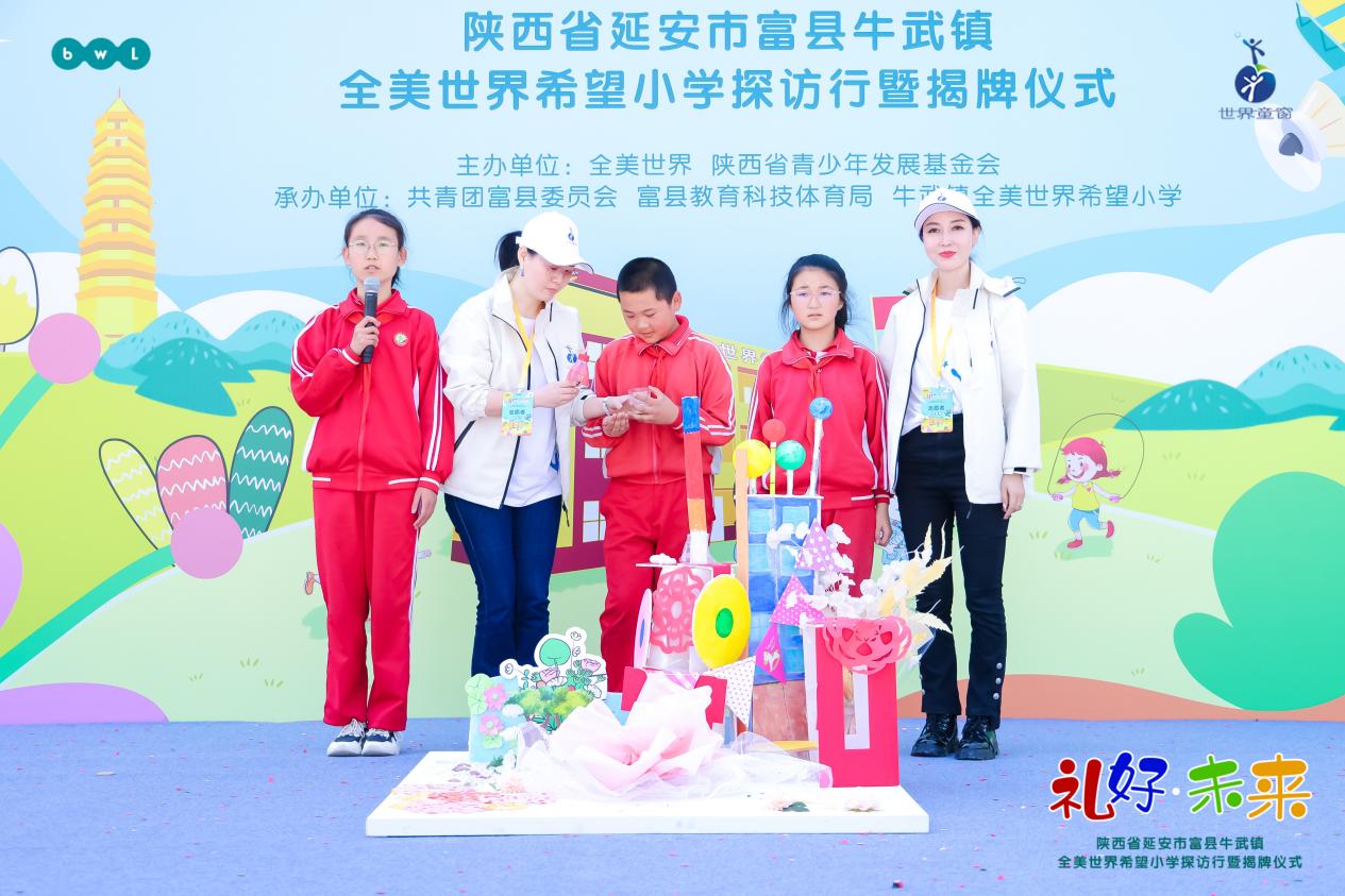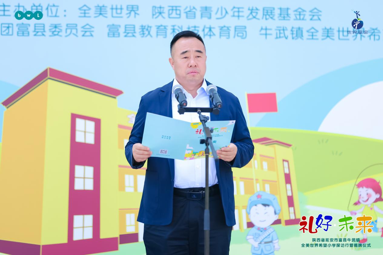 5月16日上午10点,由全美世界、陕西省青少年发展基金会主办,由共青团富县委员会、富县教育科技体育局、牛武镇全美世界希望小学共同承办的“礼好·未来”陕西省延安市富县手武镇全美希望小学公益探访行暨揭牌仪式正式开始。