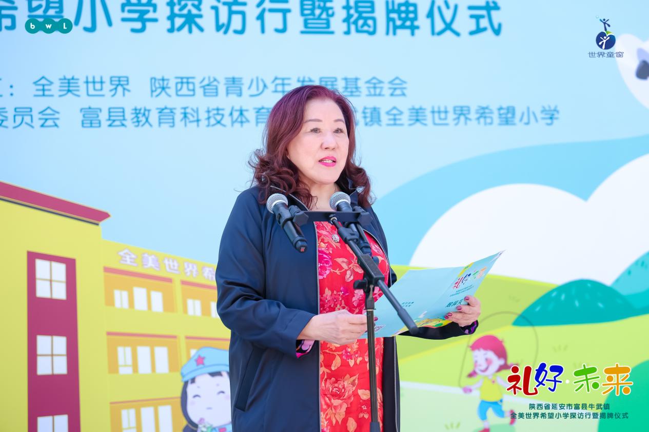 全美世界创办人范文瑂博士则在致辞中提到,延安这片热土,孕育着延安红色精神——全心全意为人民服务。这是一种至高无上的大爱,而全美世界也一直积极践行社会责任,身体力行地帮助更多孩子奔向美好未来。