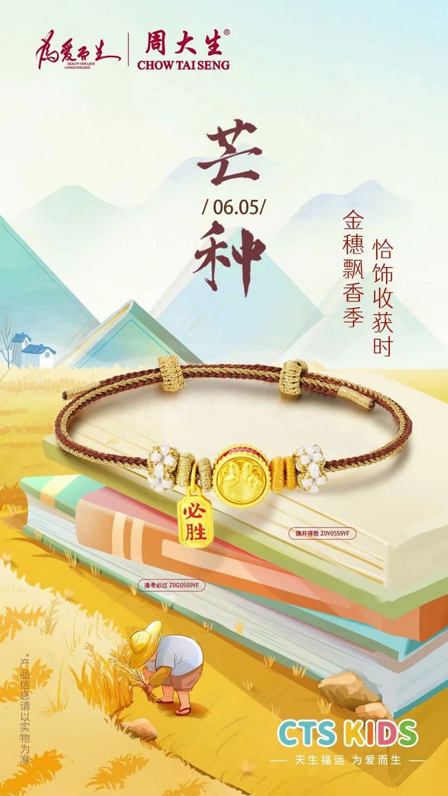 一年一度高考毕业季的到来,总能看见各种为考生祈福的仪式。无论是家长老师身穿旗袍、马褂,寓意旗开得胜,马到成功,还是考生们转发各种考试护符,亦或是全家齐上阵烧香拜佛、占星塔罗,为莘莘学子加持幸运值,祈愿考出理想成绩。恰逢此时,周大生珠宝也精心挑选CTS KIDS系列好运“饰”,萌趣的产品造型加以生动的寓意,佩戴于腕间,让玄学力量进一步守护考生,也为紧张的高考增添一抹温馨的色彩。
