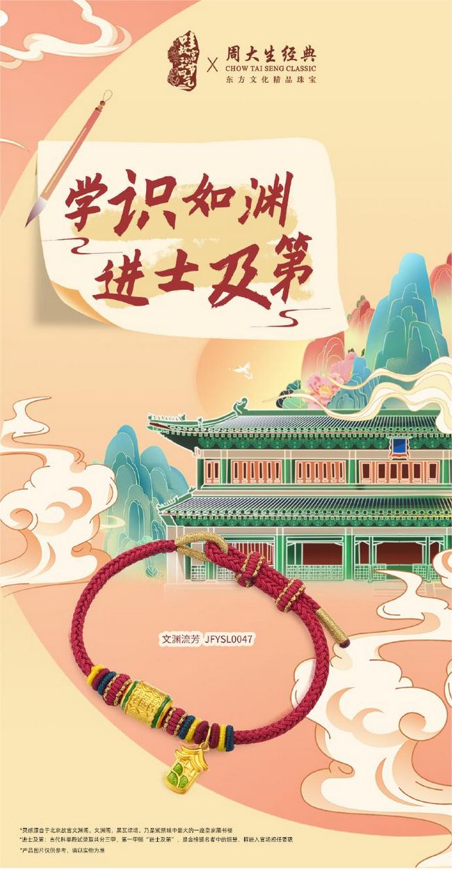 高考作为人生中最重要的节点之一,充满了无数的期冀和希望。周大生经典将祈福文化与珠宝设计相融合,将福饰佩戴于身,为广大高考学子送去虔诚祝福,愿在高考征途中所想皆所愿,所愿皆所得,给无悔的青春画上圆满的句号。