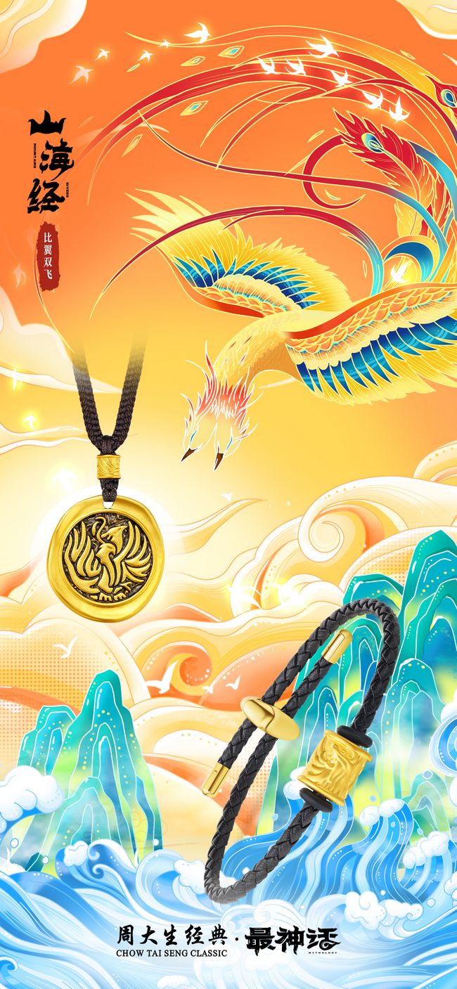 自古以来,比翼鸟在我国的传统文化中被视为爱情坚贞不渝的象征。“山海比翼”设计灵感正源自《山海经》的异兽比翼鸟。产品高度还原比翼鸟展翅高飞的神态,象征着爱人相携遨游山海的美好期待。黑金国潮配色玩转潮流个性,情侣同款搭配更是相得益彰。