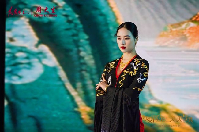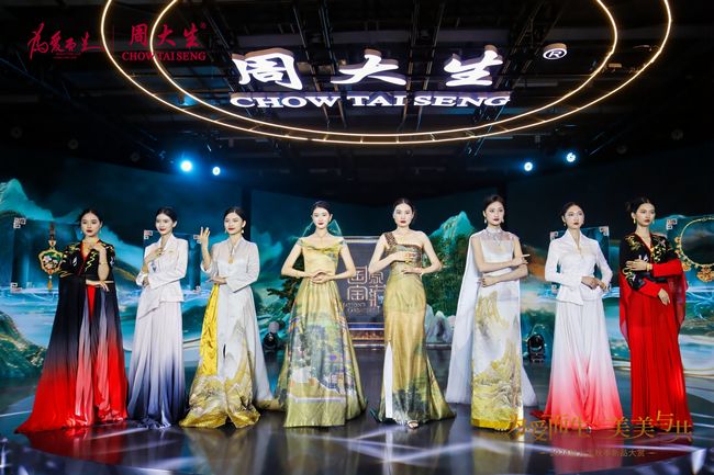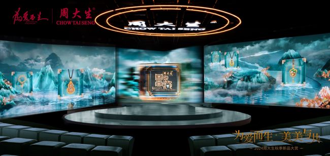 此次大秀,周大生将秀场舞台打造成壮丽恢弘的中国山水画,通过沉浸式的场景和空间,引领现场观众探寻国家宝藏×周大生IP联名新品的大美气韵,也让系列新品更加深入人心。