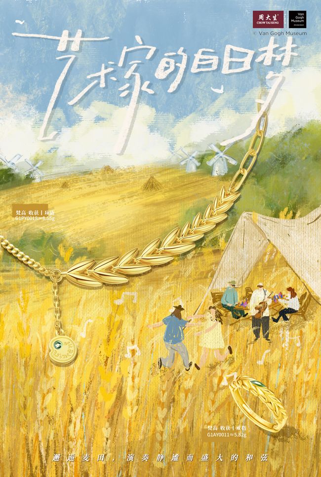 也许是人生经历的独特,让梵高对自然界一直拥有特殊的情感。世间无法容纳这个疯狂的天才,但自然界却毫无保留地接纳他,大自然也成为他探寻内心世界的重要窗口。在梵高笔下,麦穗不仅是麦穗,更是对生命的热情和收获的喜悦;杏花不再是杏花,而是生命的延续和新生的希望。自然界的炽热都被梵高收进眼里,并通过画作无限放大,一笔一触皆是深情,述说对生活和自然的无限热爱。周大生艺术珠宝携手荷兰梵高博物馆,取得梵高正版画作授权,以《收获》《盛开的杏花》为设计灵感,将梵高对自然的热爱尽数融进炽热梵高系列新品中,以珠宝为衔接还原艺术大师最真实的情感。