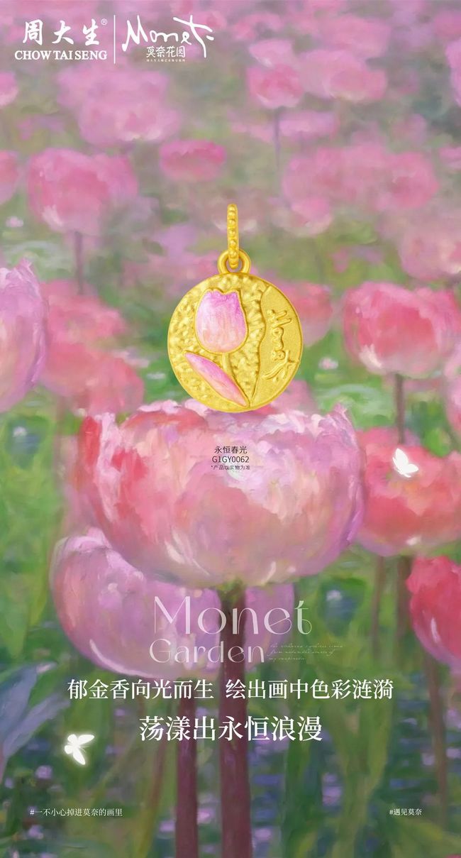 莫奈的浪漫情怀看似寄托在作品里,但追根溯源是在他亲手打造的吉维尼花园中。花园的四时之景不同,但花开无穷也。玫瑰、郁金香等花卉,它们或热烈,或含蓄,或优雅,但唯一不变的则是生机与浪漫。而这一切皆被莫奈的慧眼所捕捉,《吉维尼的艺术家花园》因此惊艳面世。周大生腕美从莫奈名作《吉维尼的艺术家花园》中汲取设计灵感,打造极致梦幻的腕上珠宝美学,引领黄金串珠产品新风尚。